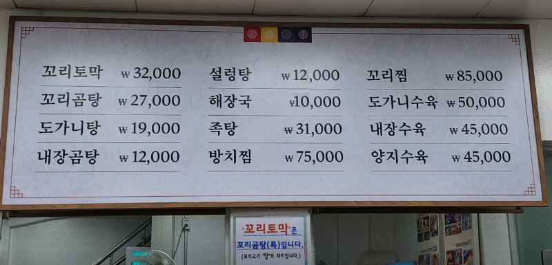 ๐ฝ๏ธ ์ง์ฃผ์ง์ ๋ํ ๋ฉ๋ด์ธ ๊ผฌ๋ฆฌ๊ณฐํ์ 27,000์, ๊ผฌ๋ฆฌ์ฐ์ 85,000์, ํด์ฅ๊ตญ์ 10,000์์ผ๋ก ๊ฐ๊ฒฉ๋ ์ฐฉํด์.